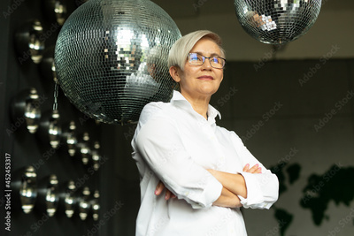 face of an elderly female with glasses indoors