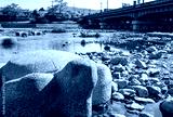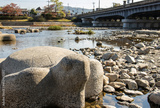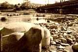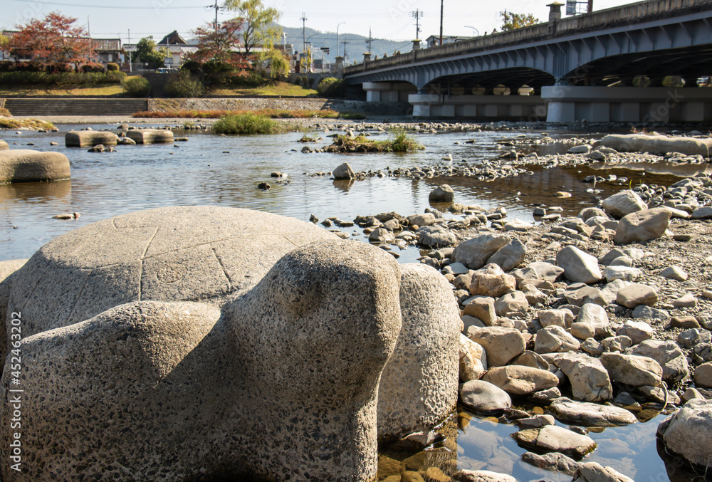 京都 鴨川 大きな亀の石