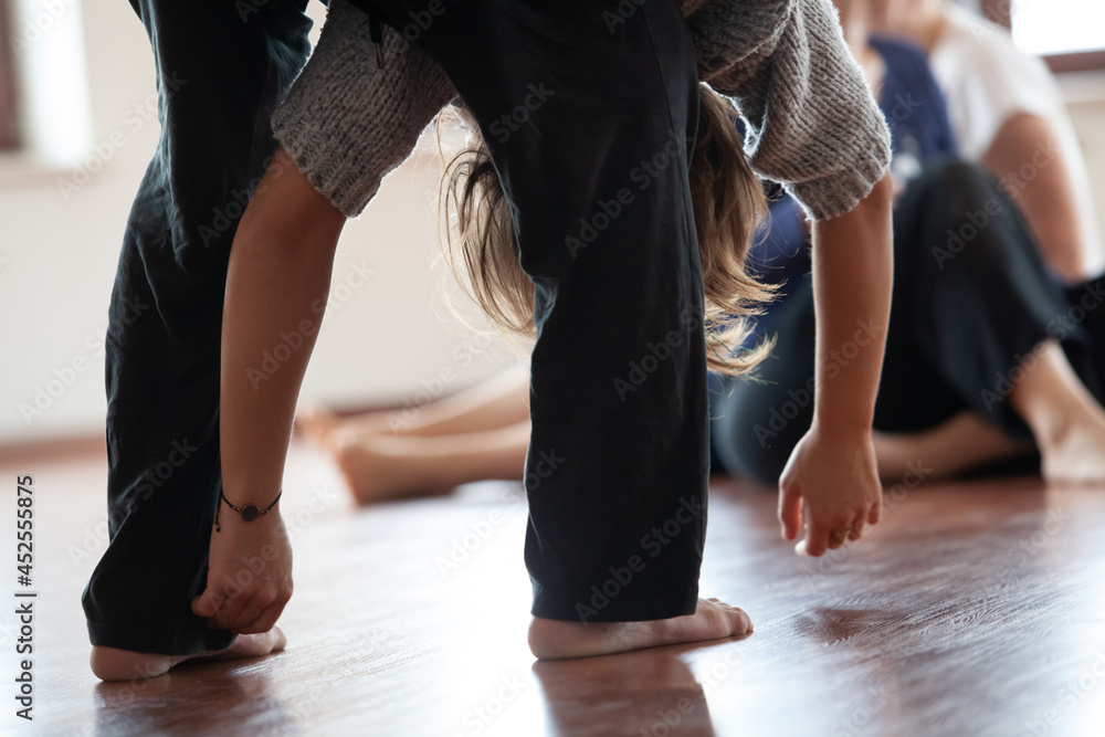 two dancers move in contact improvisation performance