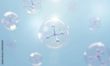molecule inside bubble on pink background, concept skin care cosmetics solution. 3d rendering.