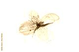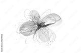 Abstract texture Watercolor flower with drops and doodle gold line elements on white background.