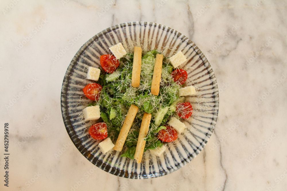 Mediterranean salad with feta cheese, tomatoes and peppers. Mediterranean salad and Mediterranean food.