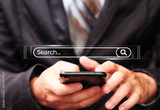 Business hand using smartphone with data search technology Search engine Optimization, Searching for information