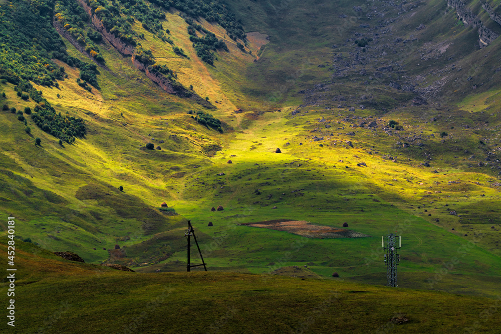 Sunlight on a valley in the mountains