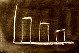 White color chalk drawing as downward bar graph on blackboard or chalkboard background (Concept for sale, profit, cost of company in uptrend)