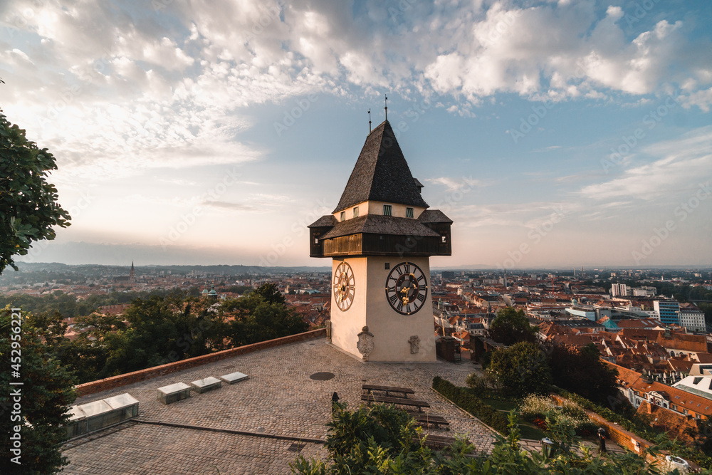 Schlossberg clock tower, a representative symbol of Graz city, Austria, famous uropean destination