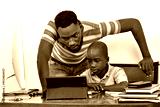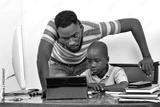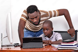 portrait of a beautiful family with tablet.
