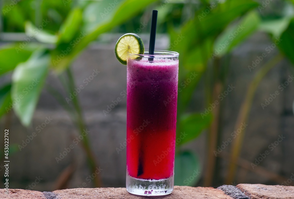 Passion juice, combination of dragon fruit, pineapple and banana. Shallow focus
