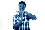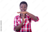 beautiful young woman making a time out gesture.