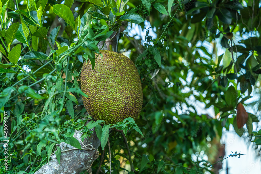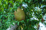 young Jackfruit on the Jackfruit Tree is Asian summer fruits in a garden background harvest thailand.