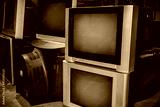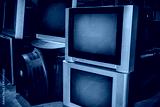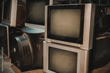 Pile of old TVs in repair shop. Tube television receiver, CRT