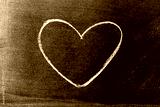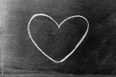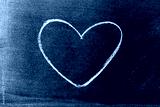 White color chalk hand drawing in heart shape on blackboard or chalkboard background
