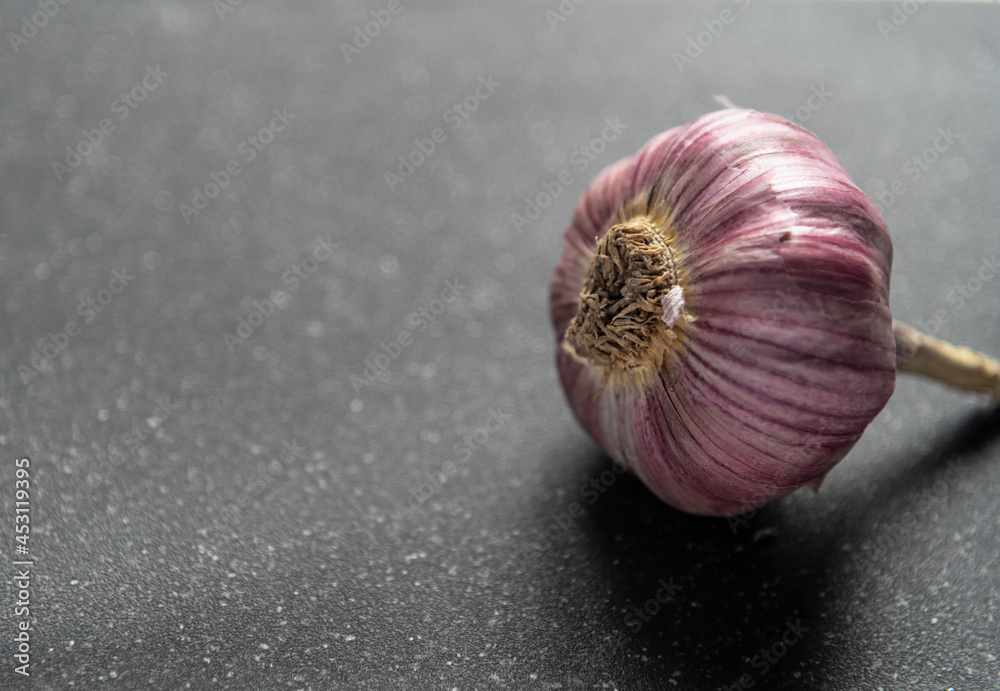 organic garlic cloves close up on dark background