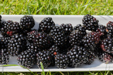 Jeżyny dojrzałe na białym półmisku