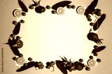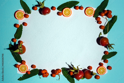 Paper Card Mockup on a Green Leaves, Greeting card template with a frame of berries and leaves.