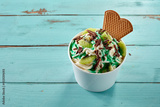 Vanilla Spaghetti Ice-cream Sundae with fresh kiwifruit