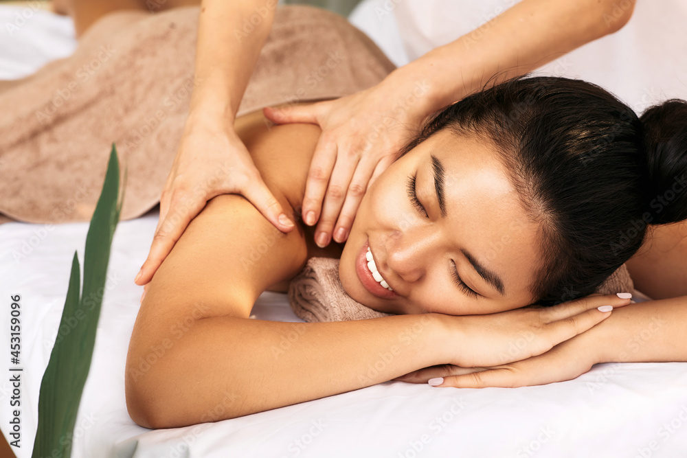 Thai Massage therapy. Portrait asian woman enjoying massage at the spa