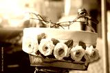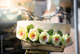 bicycle basket with flower decoration. roses decorations