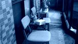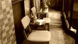 バルコニーで読書。日本のマンションのベランダ。椅子とテーブルと本。