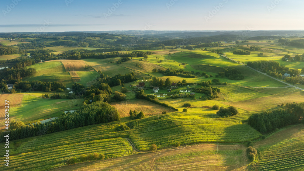 Beautiful green hills at the morning - aerial view