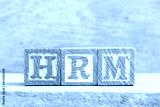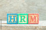 Color alphabet letter block in word HRM (Abbreviation of human resource management) on wood background