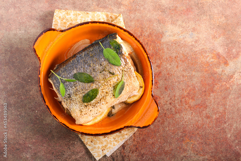 Sage and lemon sea bass