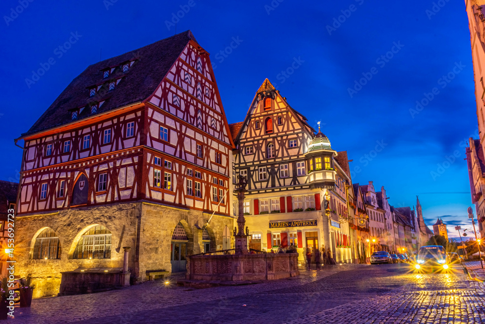 ROTHENBURG OB DER TAUBER, GERMANY, 26 JULY 2020 Beautiful illuminated square of the historic center at night