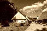 SANOK, POLAND, 22 AUGUST 2018: Old wooden buildings of the open-air museum (or skansen)