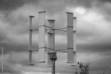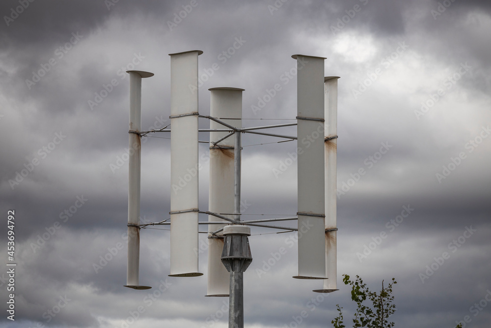 View of rotating holder for solar panels on cloudy sky background. Europe. Sweden.