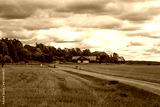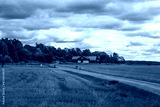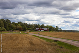 Beautiful nature landscape view of field after harvesting under cloudy summer sky. Sweden.