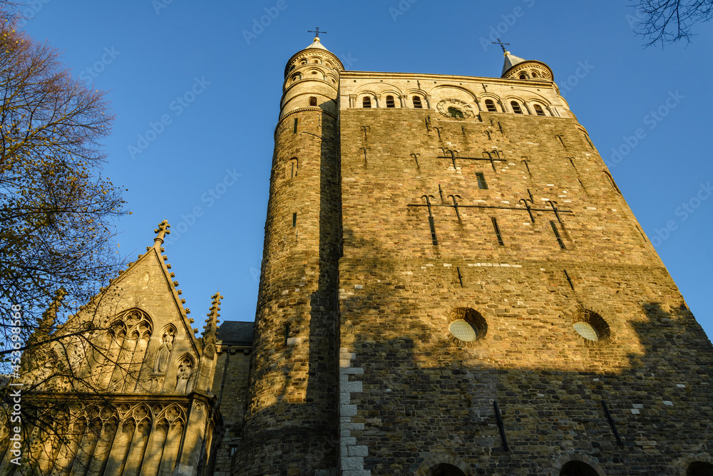 Outdoor sunny view of Basilica of Our Lady, Basiliek van Onze Lieve Vrouwe, in Maastricht, Netherlands.