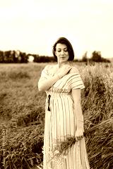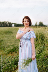 Beautiful young woman in summer in a wheat field