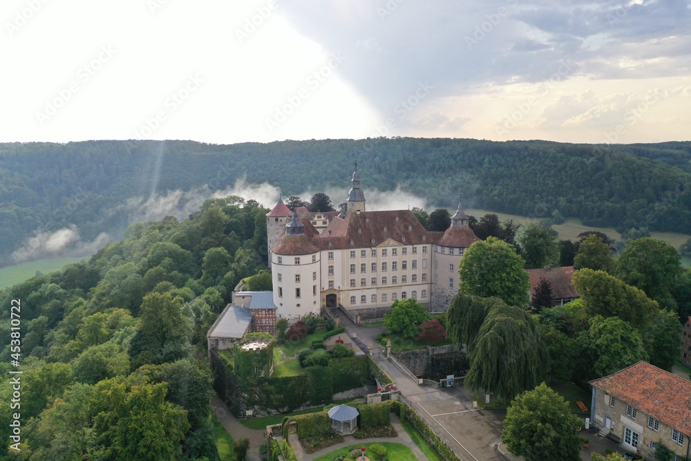 Langenburg Castle in Langenburg, Germany on a misty afternoon