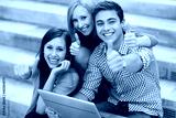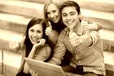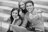 Friends with laptop showing thumbs up