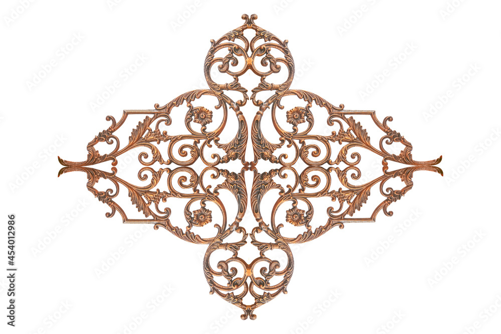 Ornament elements, vintage metal floral designs or Alloy decorative isolated on white background, clipping path for design usage purpose.