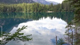 Europe, Italy, Trentino, Dolomites italian Alps mountains - Tovel lake, Lago di Tovel with green water and pines forest during the summer - sand beach