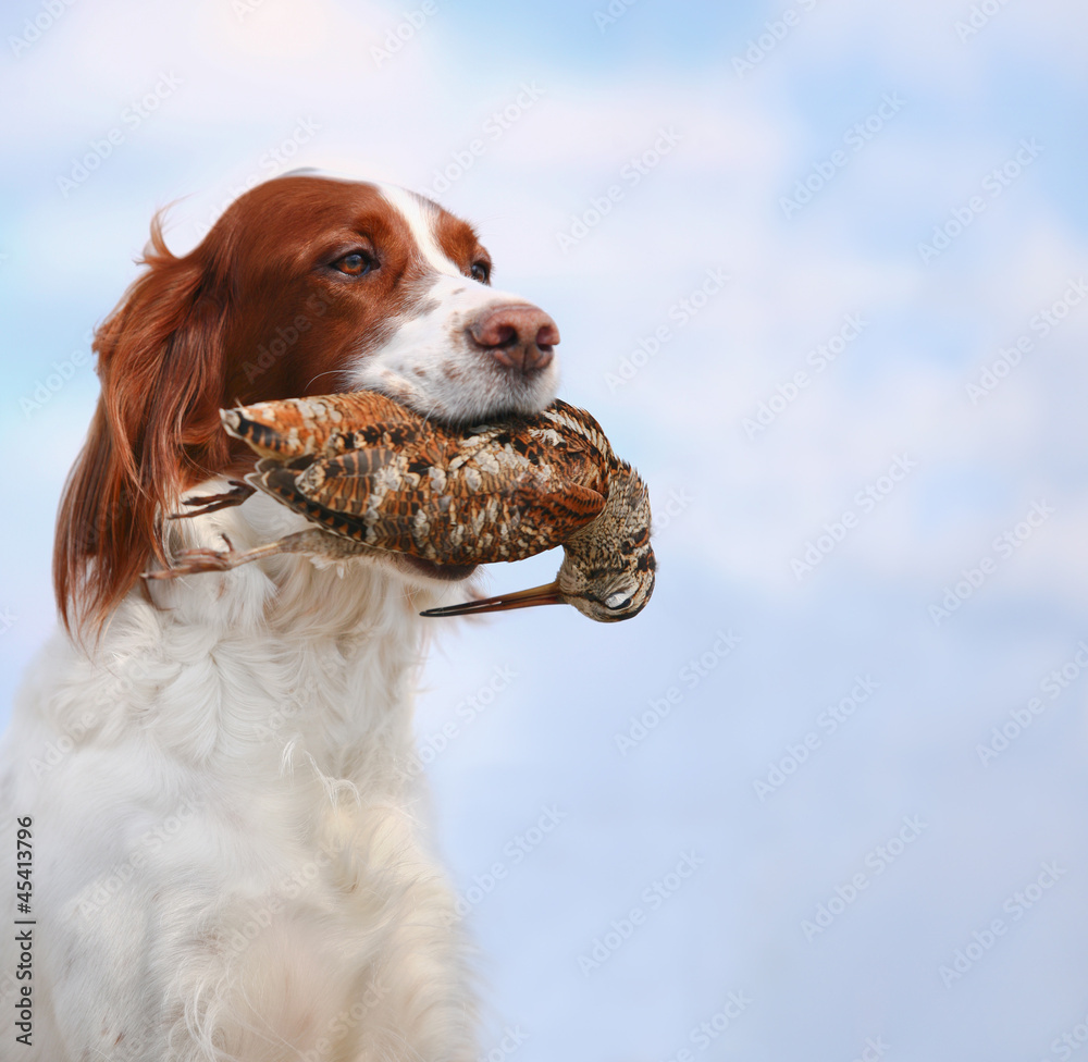 dog holds a woodcock