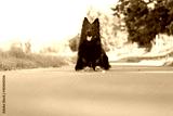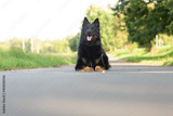 Dog breed Chodsky dog, lying front view from below
