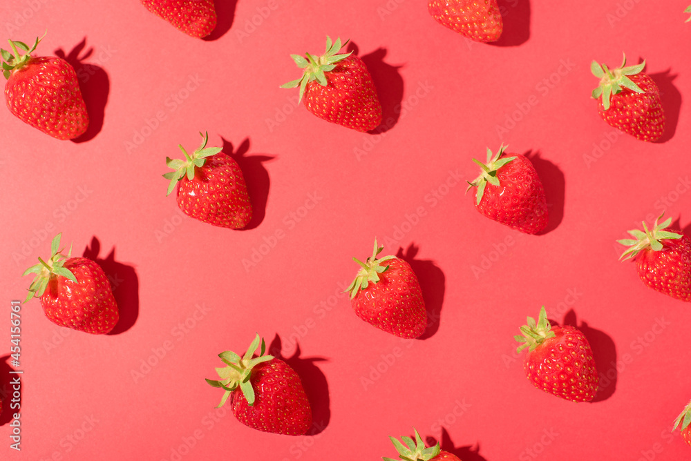 Pattern of red sweet ripe juicy strawberries.