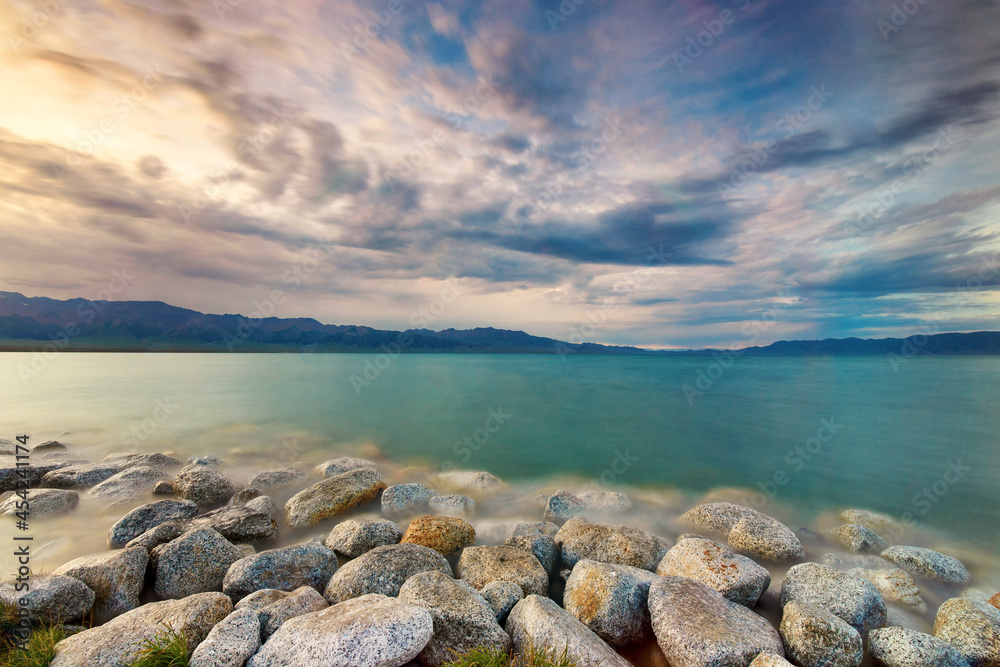 Sailimu lake landscape in Xinjiang Uygur Autonomous Region, China.