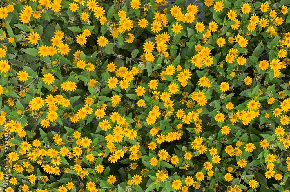 Top view of Melampodium Butter Daisy, mini sun flower, yellow flower Rudbeckia, Heliopsis helianthoides