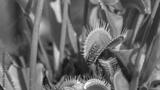 CLOSE UP, DOF: Lucky yellow wasp escapes a carnivorous Dionaea muscipula's trap.