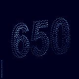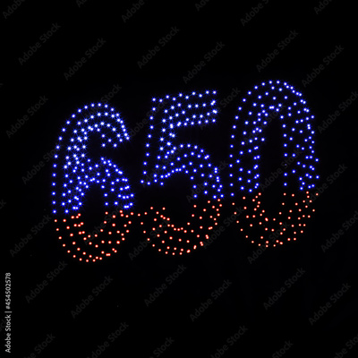 Colorful drone light shows on a night sky background. A figure of the number 650 made of glowing drones.