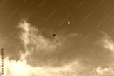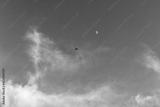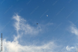Beautiful blue sky with plane flying on distance. Natural background wallpaper. Calmness atmosphere during summer weather.