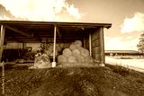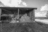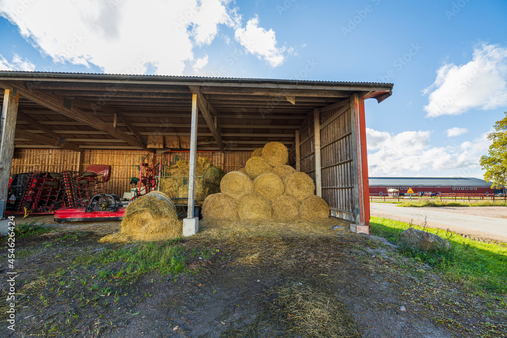 Beautiful view of rolled hay harvested for winter. Animal husbandry concept.