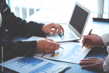 business people photo The feasibility of the project is being analyzed. with documents placed on the table and laptop
