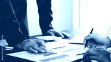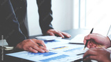 business people photo The feasibility of the project is being analyzed. with documents placed on the table and laptop