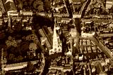 Aerial shot of the St Mary Magdalene Church in Newark-on-Trent, England