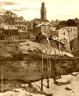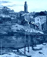 the city landscape of Vitebsk drawn with oil on a canvas