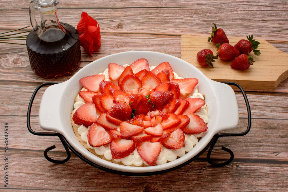 Delicioso mostach{on hecho en casa decorado con fresas.